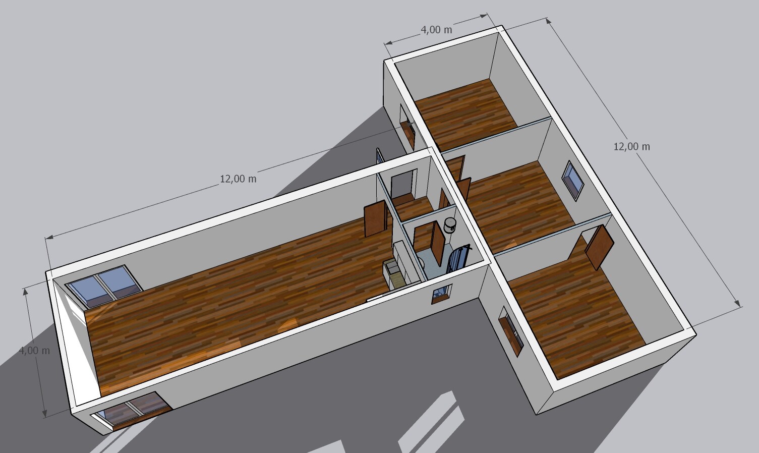 | Rozvržení: | 3 ložnice, obývací pokoj s kuchyňským koutem, koupelna, WC |
