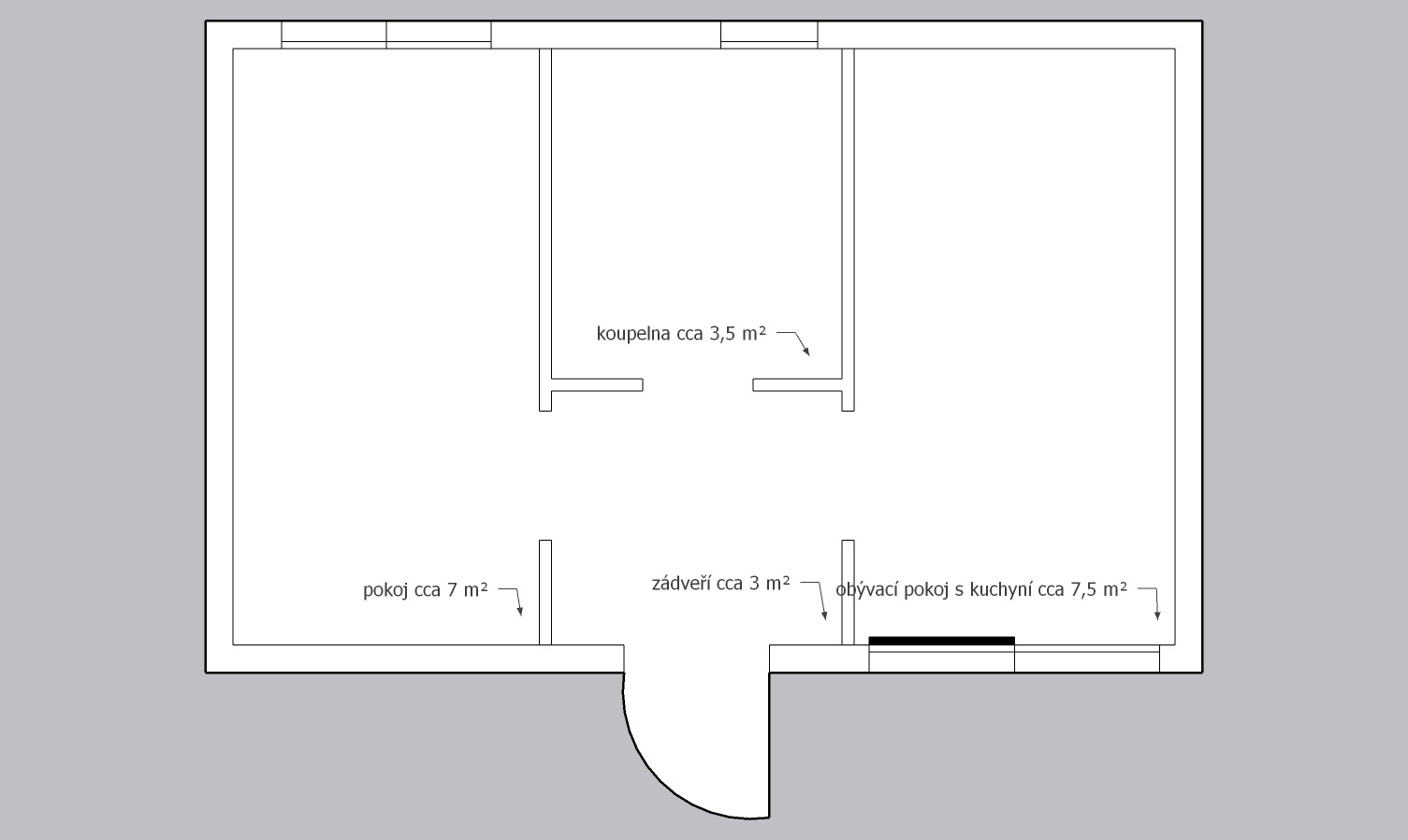 | Rozvržení: | 1 ložnice, obývací pokoj s kuchyňským koutem, koupelna, WC |
