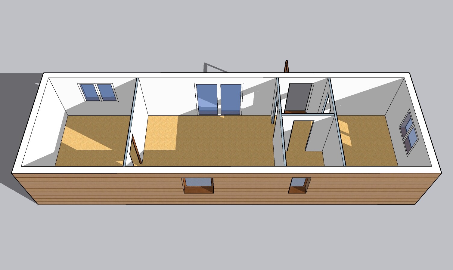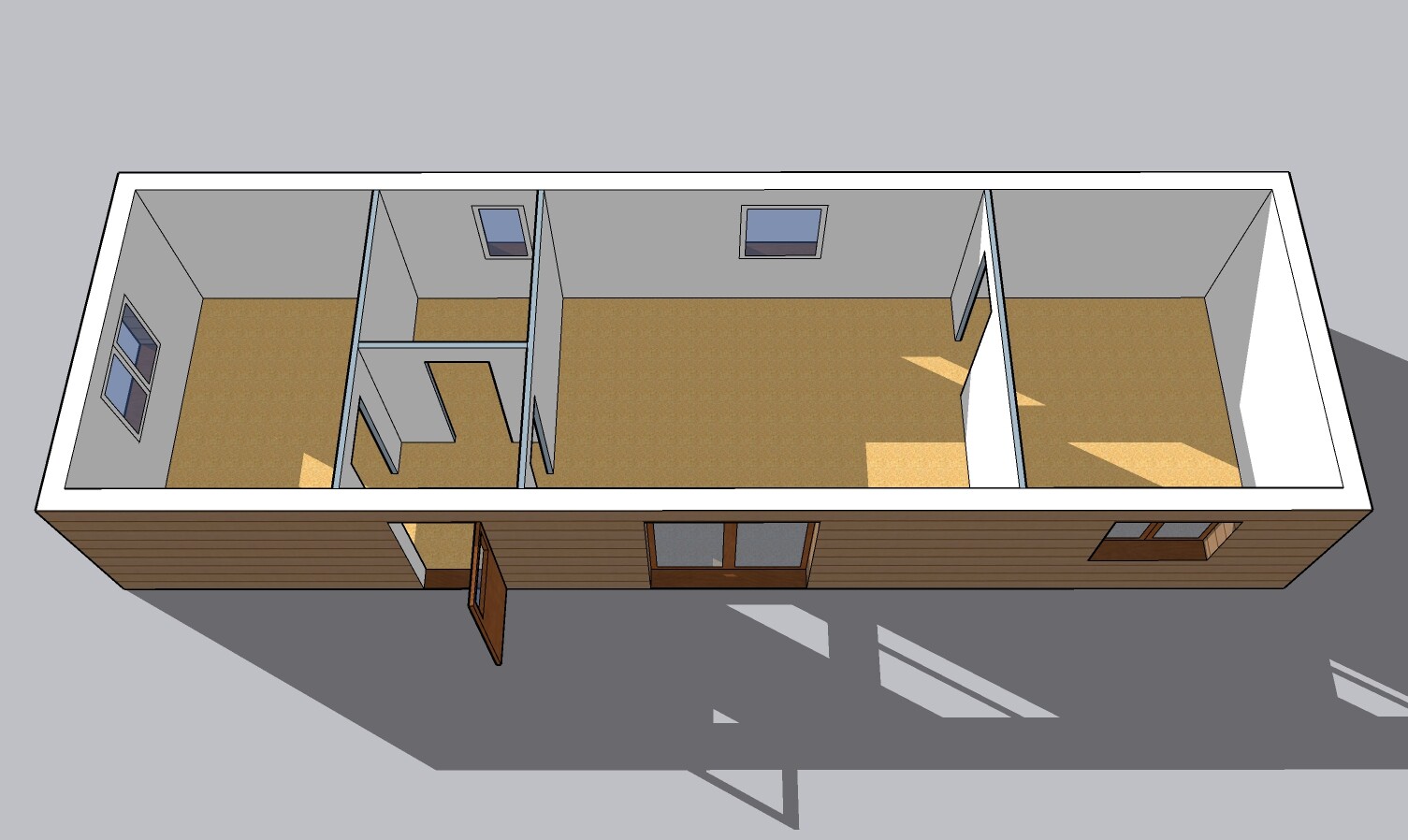 | Výbava: | Nový mobilheim jako holobyt, dřevěný obklad, vnitřní stěny sádrokarton, strop dřevěný obklad, možnost nainstalování podlahy, obložek a vnitřních dveří, koupelnového vybavení, kuchyně |