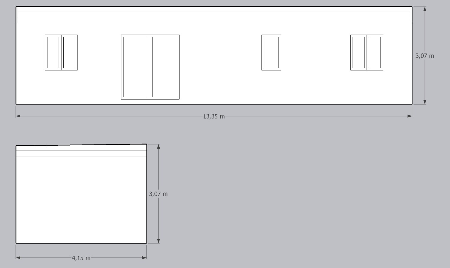 | Rozměry: | 13, 39 x 4,19 (cca 56m2) |