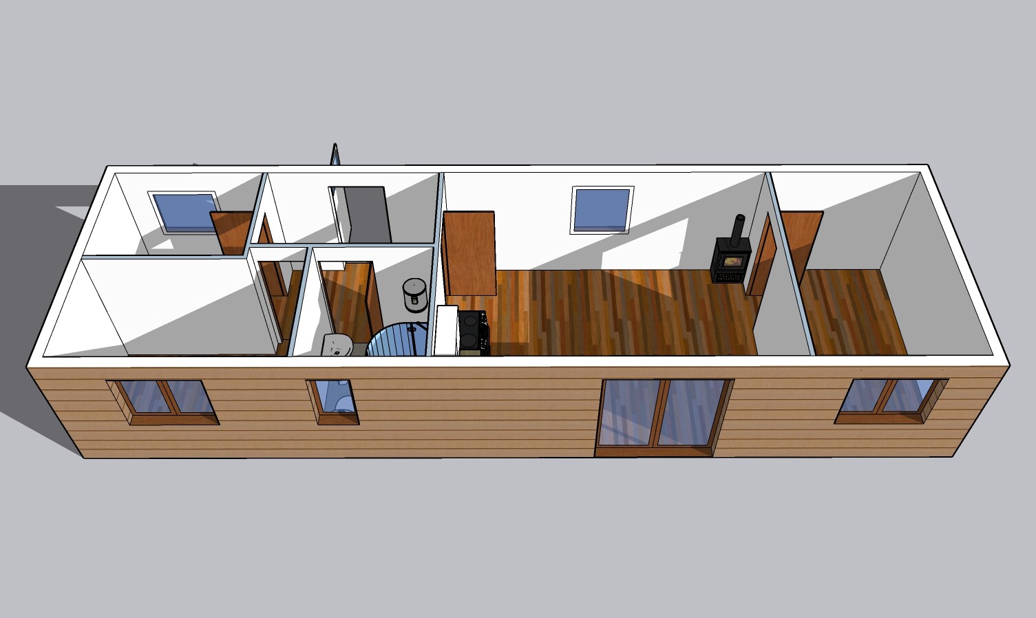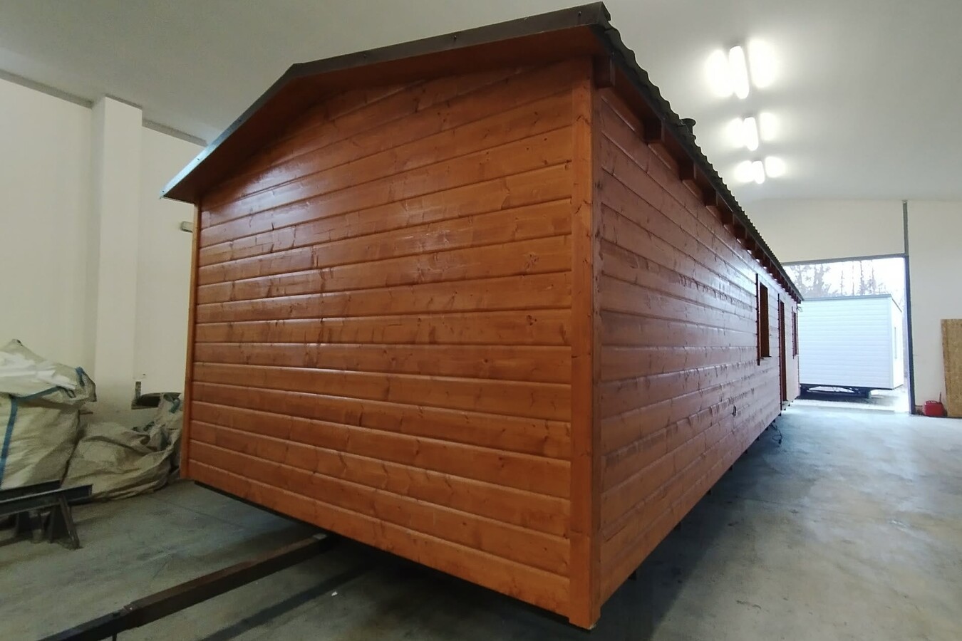 | Výbava: | Nový mobilheim, dřevěný obklad, vnitřní stěny sádrokarton, strop dřevěný obklad, podlaha zátěžové lino, kuchyně (dřez, digestoř, varná deska s troubou), koupelna (WC, umyvadlo, sprchový box, bojler 80l), síla vnějších stěn cca 17 cm (minerální vata), podlahy cca 15 cm (minerální vata), střechy cca 24 cm (minerální vata) |