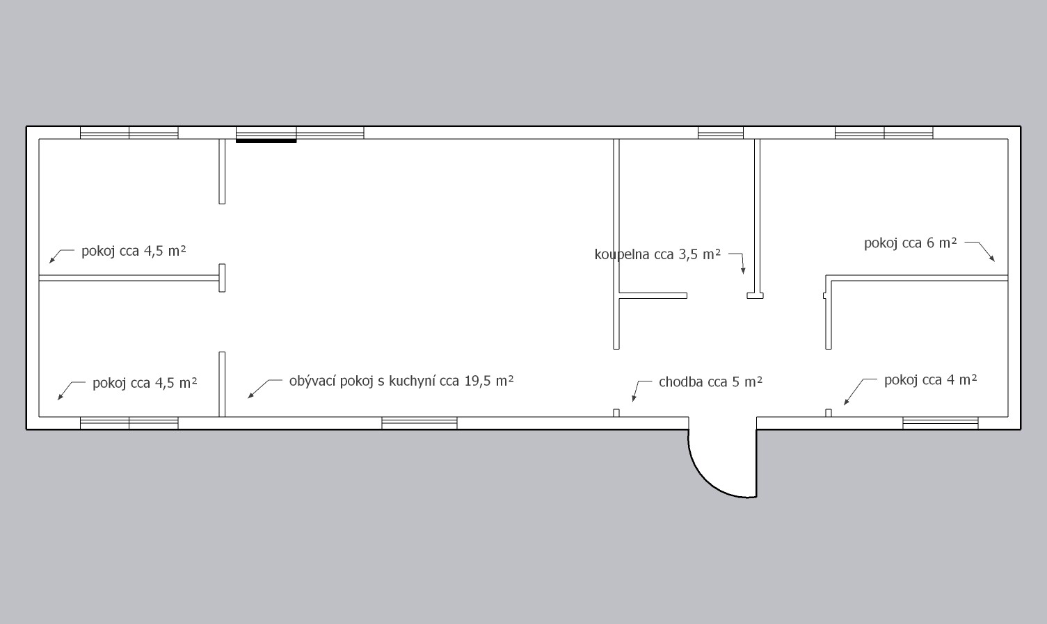 Rozměry: 13,2 x 4m (cca 53m2)