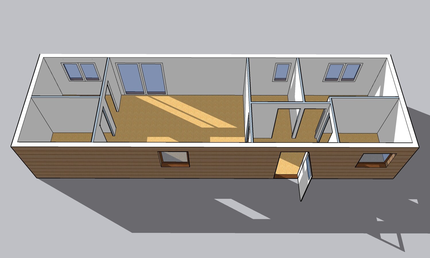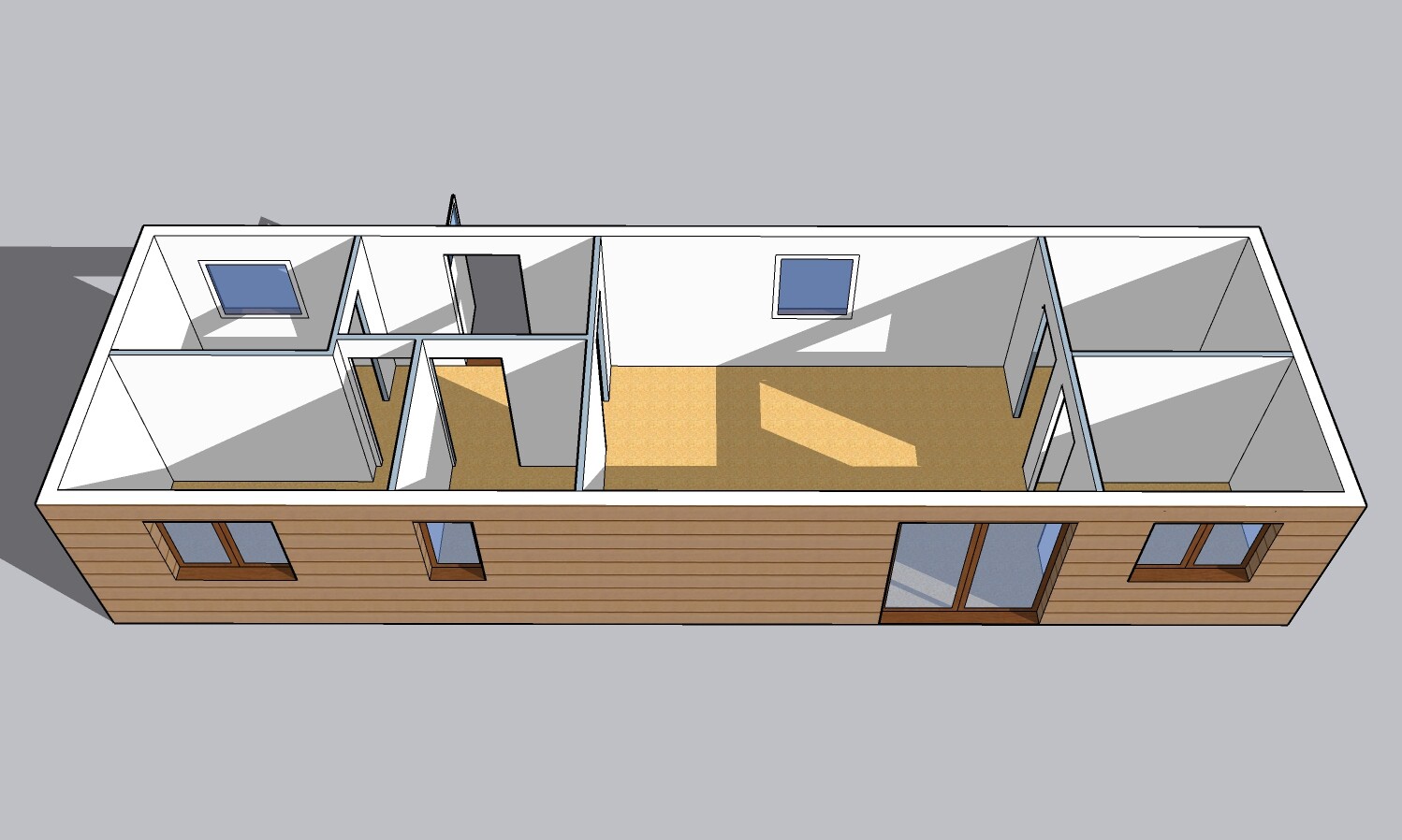 Výbava: Nový mobilheim jako holobyt, dřevěný obklad, vnitřní stěny sádrokarton, strop dřevěný obklad, možnost nainstalování podlahy, obložek a vnitřních dveří, koupelnového vybavení, kuchyně