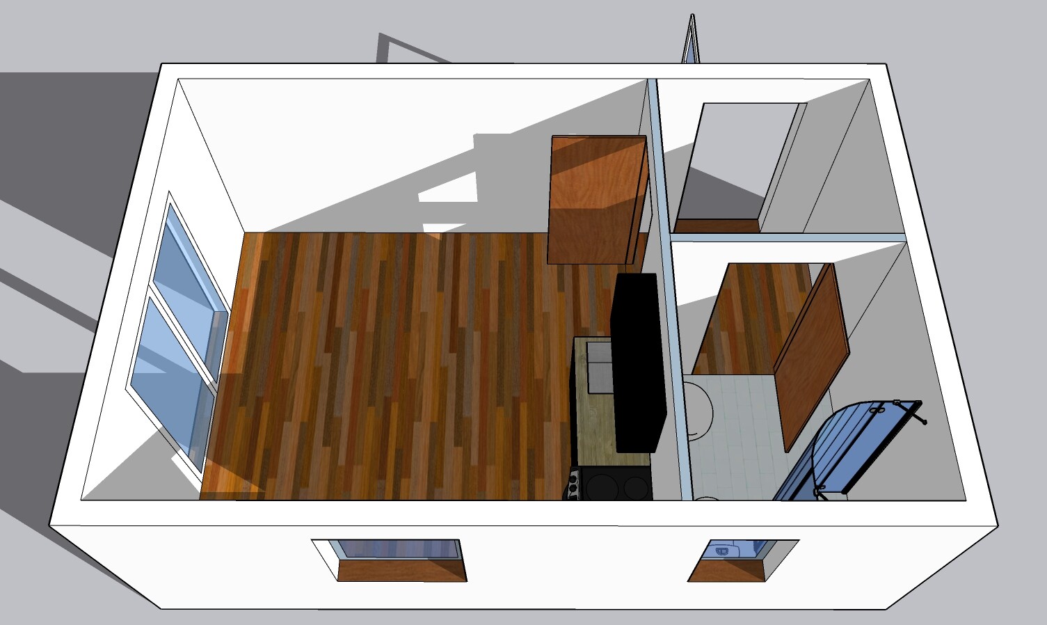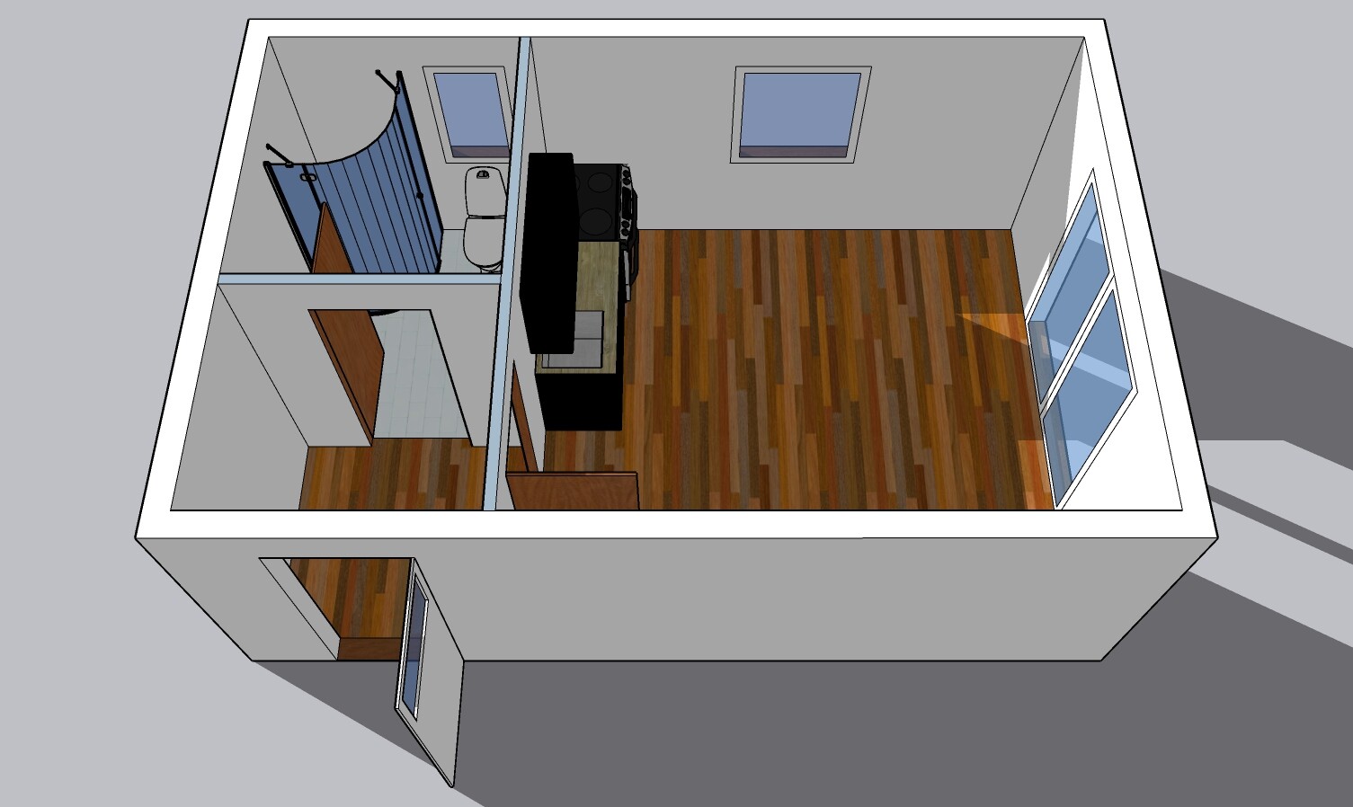 | Rozvržení: | obývací pokoj s kuchyňským koutem, koupelna, WC |