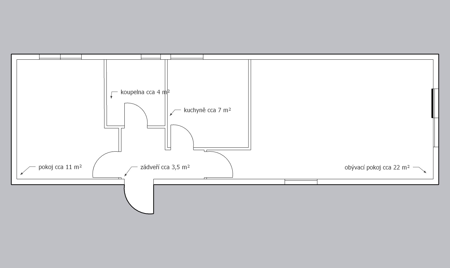 Rozměry: 13,19 x 4,19 (cca 55m2)