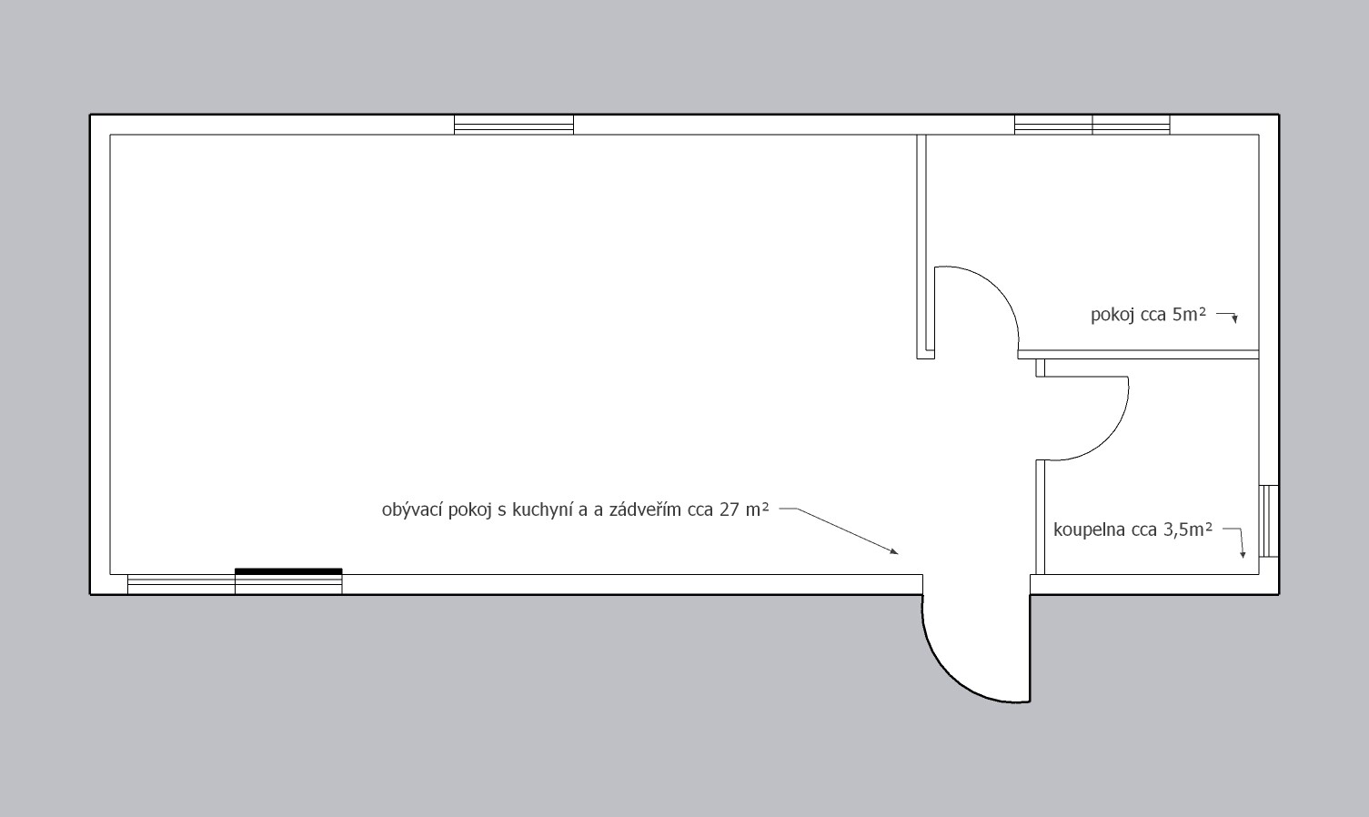| Rozměry: | 10,2 x 4,2 (cca 43m2) |