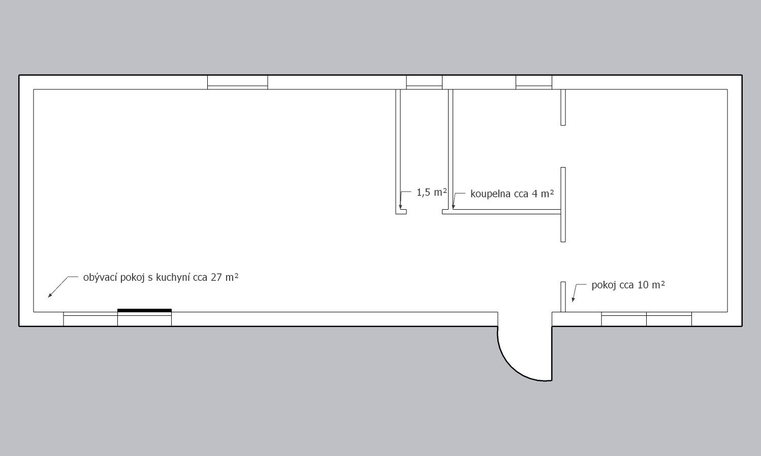 | Rozvržení: | 1 ložnice, obývací pokoj s kuchyňským koutem, koupelna, 2 WC |