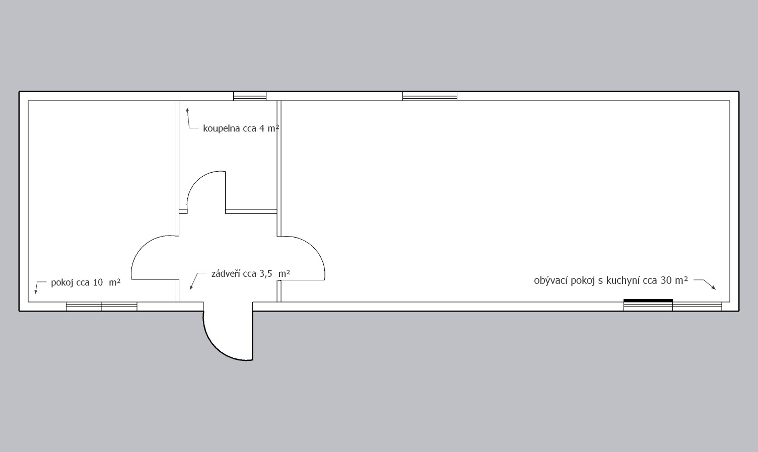 Rozměry: 13,19 x 4,19 (cca 55m2)