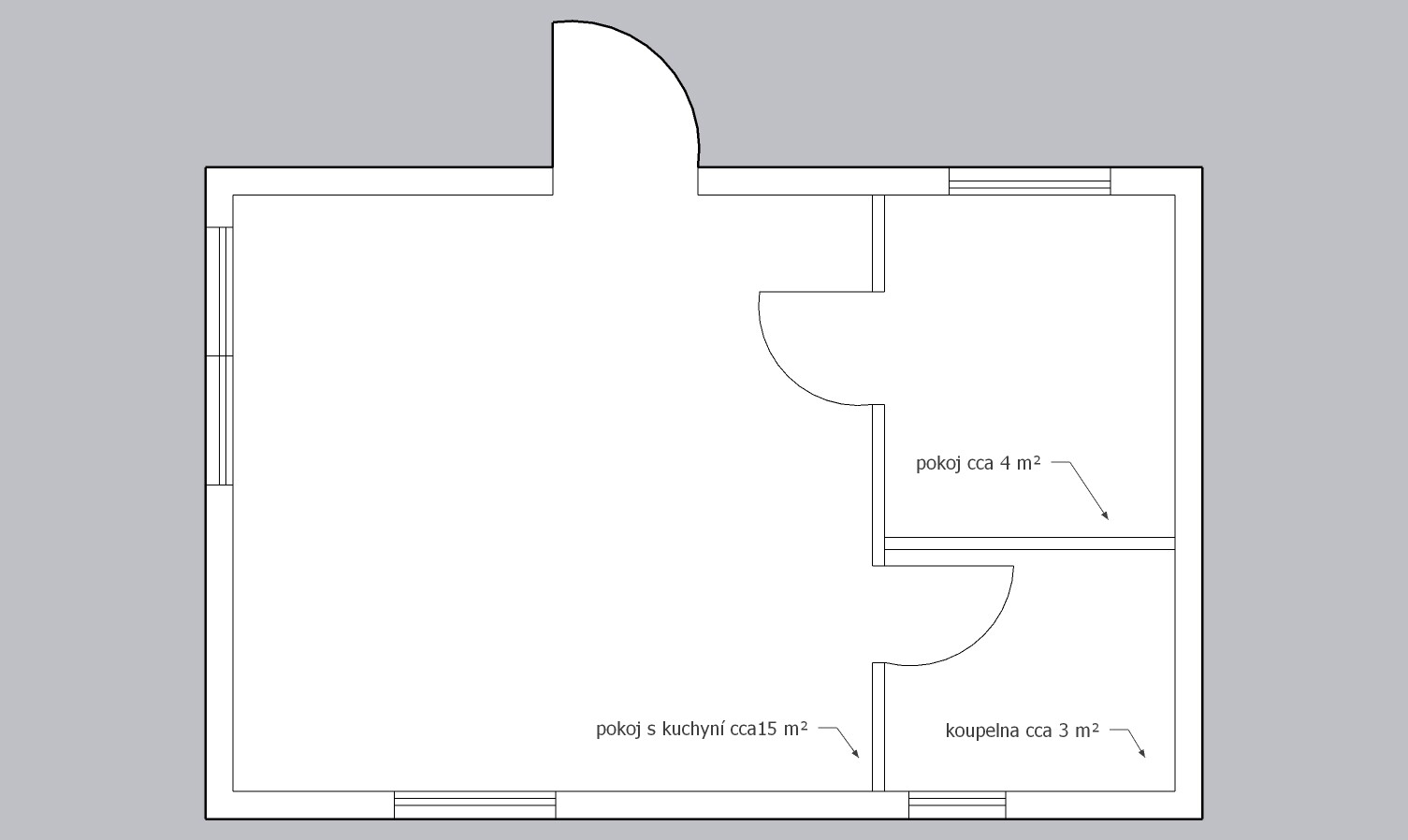 | Rozměry: | 6,4 x 4,2m (cca 26,5m2) |