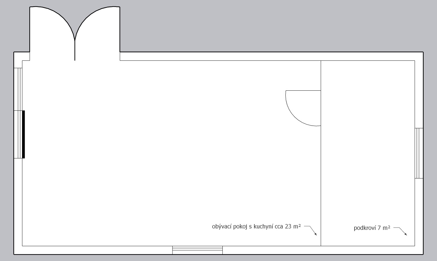 | Rozvržení: | 1 ložnice, obývací pokoj s kuchyňským koutem, podkroví, koupelna, WC |