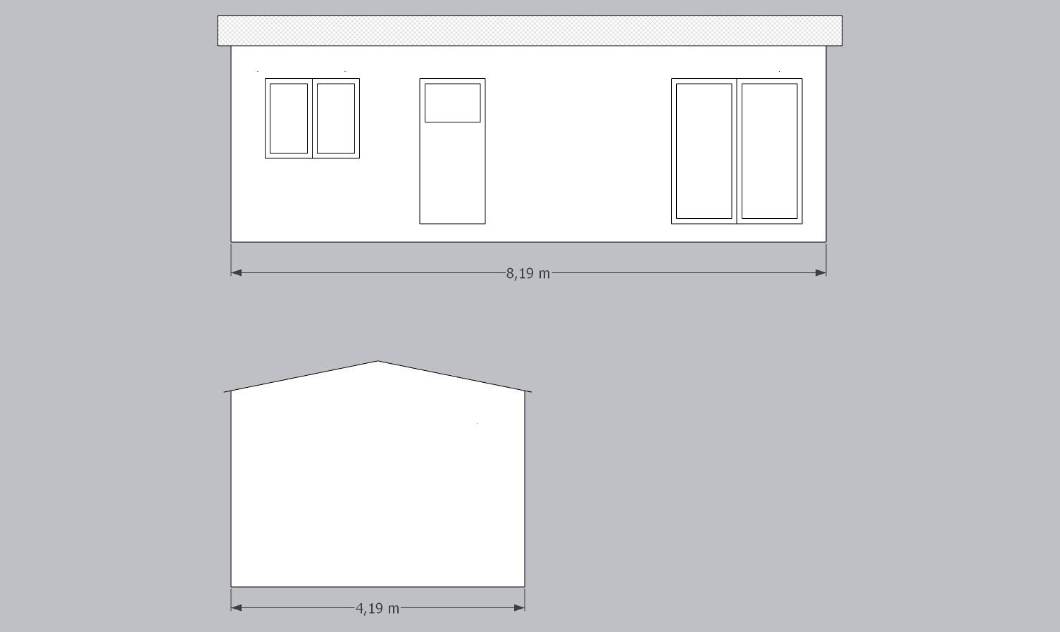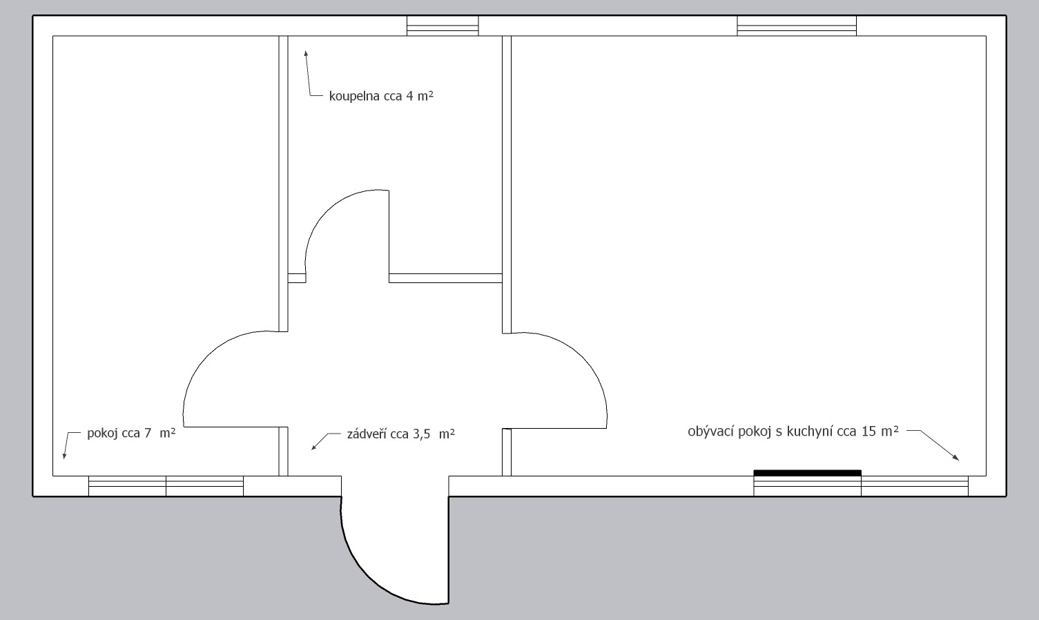 Rozměry: 8,2 x 4,2 (cca 34m2)