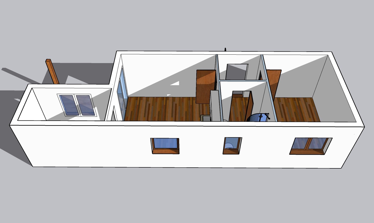 | Výbava: | Nový mobilheim, fasádní lepidlo, vnitřní stěny sádrokarton a dřevěný obklad, strop dřevěný obklad, kuchyně, (dřez, digestoř, varná deska s troubou), koupelna (WC, umyvadlo, sprchový box, bojler 80l) |