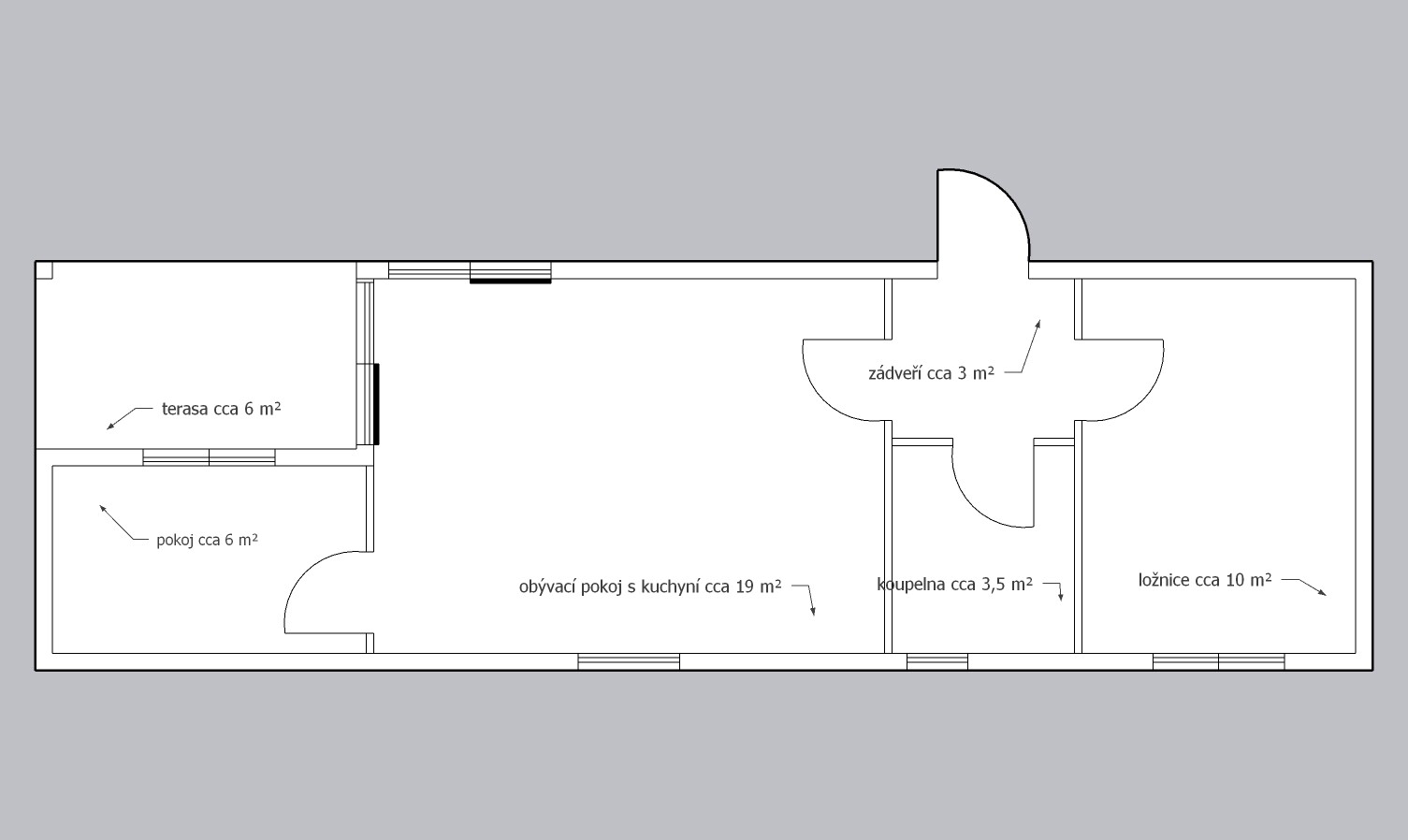 | Rozměry: | 13,19 x 4,19m (cca 56m2) |