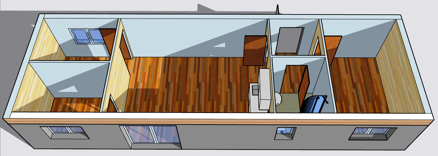 | Výbava: | Nový, fasádní lepidlo a dřevěný obklad, plochá střecha, vnitřní stěny sádrokarton v kombinaci s dřevěným obkladem, strop dřevěný obklad, podlaha zátěžové lino, kuchyně, (dřez, digestoř, varná deska s troubou), koupelna (WC, umyvadlo, sprchový box, bojler 80l) v celém mobilheimu světlá výška stropu 2,5m |