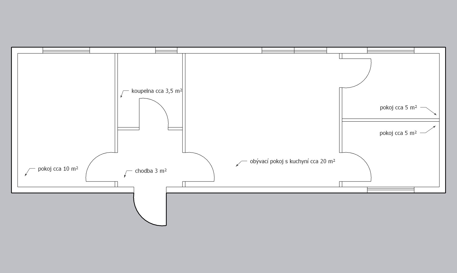 | Rozměry: | 13, 39 x 4,19 (cca 56m2) |