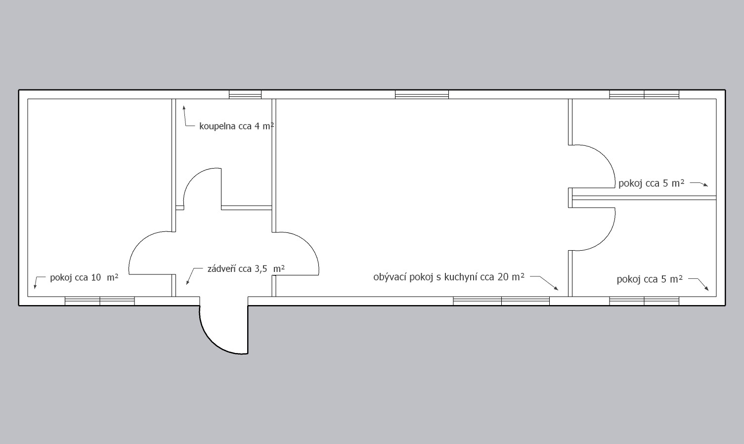 | Rozměry: | 13,39 x 4,19 (cca 56m2) |